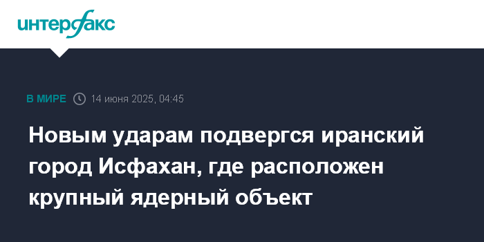 Новым ударам подвергся иранский город Исфахан, где расположен крупный ядерный объект