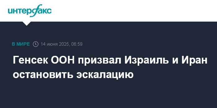 "Израильская бомбардировка иранских ядерных объектов. Иранские ракетные удары по Тель-Авиву. Хватит эскалации. Пора остановиться. Мир и дипломатия должны возобладать", - написал Гутерриш в социальных сетях.