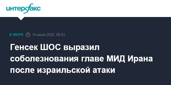 Генсек ШОС выразил соболезнования главе МИД Ирана после израильской атаки