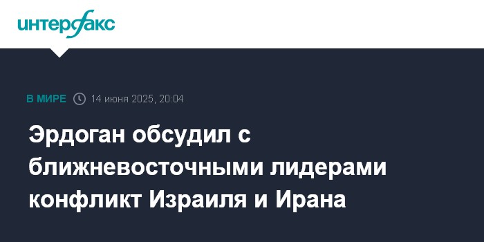 Москва. 14 июня. INTERFAX.RU - Президент Турции Реджеп Тайип Эрдоган провел телефонные разговоры с лидерами ряда ближневосточных стран, в том числе с президентом Ирана Масудом Пезешкианом, в ходе которых обсудил ситуацию с обменом ударами Израилем и Ираном, сообщает в субботу агентство "Анадолу".