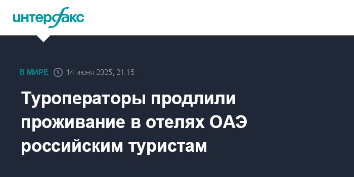 Москва. 14 июня. INTERFAX.RU - Российские туроператоры продлили проживание в отелях ОАЭ туристам, ожидающим своего рейса в РФ в связи с закрытием воздушного пространства над Ираном, сообщает Ассоциация туроператоров России (АТОР).