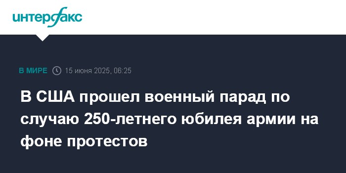 Москва. 15 июня. INTERFAX.RU - Президент США Дональд Трамп принял в Вашингтоне масштабный военный перед, посвященный 250-й годовщине американской армии.