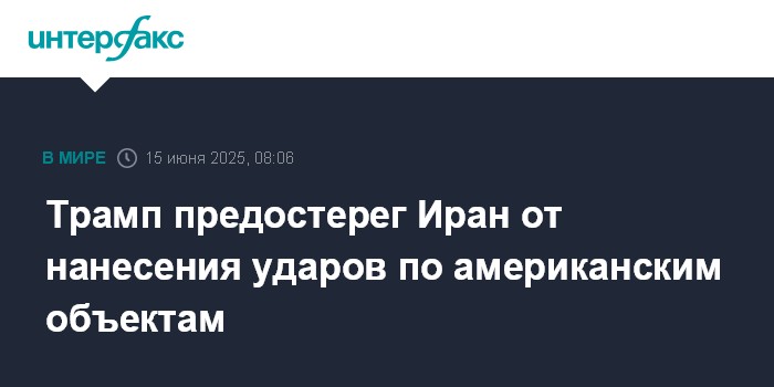 Москва. 15 июня. INTERFAX.RU - Президент Дональд Трамп предупредил, что США используют всю мощь своих вооруженных сил, если Иран каким-либо образом атакует американские объекты.