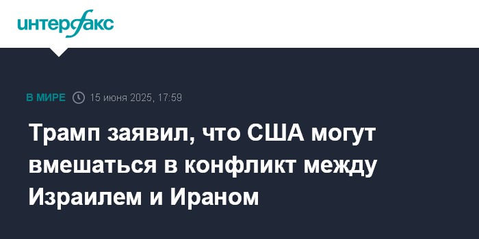 Москва. 15 июня. INTERFAX.RU - Президент США Дональд Трамп не исключил, что Вашингтон может вмешаться в конфликт между Израилем и Ираном.