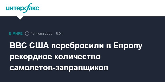 Москва. 16 июня. INTERFAX.RU - США в понедельник перебросили с континентальной части страны на авиабазы в Европу более 30 самолетов-заправщиков, сообщило издание Military Watch Magazine.