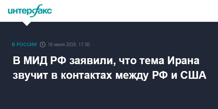 В МИД РФ заявили, что тема Ирана звучит в контактах между РФ и США