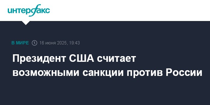 Москва. 16 июня. INTERFAX.RU - Президент США Дональд Трамп в понедельник заявил, что не исключает новых антироссийских санкций.