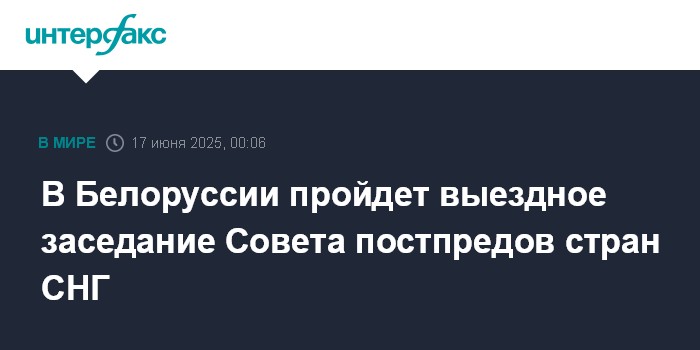 Москва. 17 июня. INTERFAX.RU - Выездное заседание Совета постпредов стран Содружества Независимых Государств состоится 17 июня в Дзержинском районе Минской области Белоруссии, сообщили в пресс-службе Исполнительного комитета СНГ.