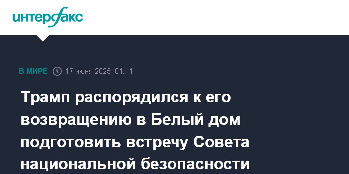 Москва. 17 июня. INTERFAX.RU - Президент США Дональд Трамп отдал распоряжение Совету национальной безопасности к его возвращению с канадского саммита G7 быть готовым к поведению совещания, сообщает Fox News.
