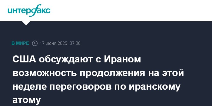 Москва. 17 июня. INTERFAX.RU - Белый дом обсуждает с Ираном возможность проведения на этой неделе встречи спецпосланника президента США Стива Уиткоффа с главой МИД Ирана Аббасом Аракчи с целью обсуждения дипломатических путей заключения ядерной сделки и прекращения войны между Израилем и Ираном, пишет портал Axios.