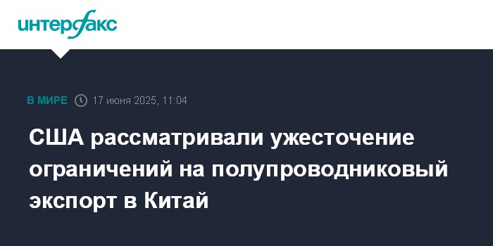 Москва. 17 июня. INTERFAX.RU - Министерство торговли США в последние недели рассматривало возможность ужесточения ограничений на экспорт продукции полупроводниковой отрасли в Китай, пишет The Wall Street Journal со ссылкой на информированные источники.