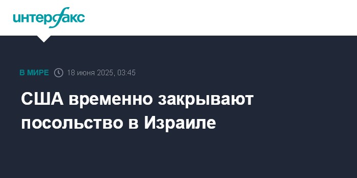 Москва. 18 июня. INTERFAX.RU - Посольство США в Израиле и американские консульские учреждения будут временно закрыты по соображениям безопасности в связи с ситуацией на Ближнем Востоке, сообщила дипмиссия.