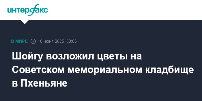 Москва. 18 июня. INTERFAX.RU - Находящийся с официальным визитом в КНДР секретарь Совета безопасности РФ Сергей Шойгу и члены российской делегации возложили цветы на Советском мемориальном кладбище в Пхеньяне.