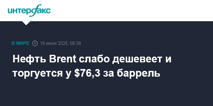 Москва. 18 июня. INTERFAX.RU - Цены на нефть слабо снижаются утром в среду после роста более чем на 4% накануне на опасениях перебоев в поставках из-за эскалации ирано-израильского конфликта.