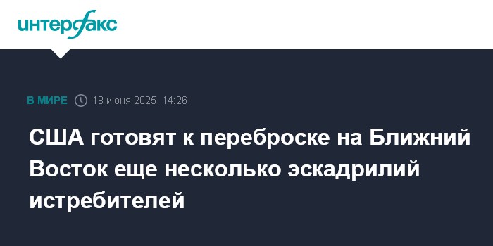 Переброска истребителей последовала после заявления в понедельник главы Пентагона Пита Хегсета о том, что США перебрасывают на Ближний Восток дополнительные силы для оборонительных операций. "В течение уикенда я распорядился развернуть дополнительные силы в зоне ответственности Центрального командования", - написал Хегсет в соцсети X.