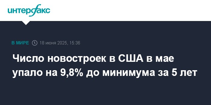 Число новостроек в США в прошлом месяце было на 4,4% ниже, чем в мае 2024 года.