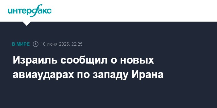 Москва. 18 июня. INTERFAX.RU - Армия обороны Израиля (ЦАХАЛ) наносит очередную серию авиаударов по западу Ирана, сообщил в среду представитель военного командования, бригадный генерал Эффи Дефрин.