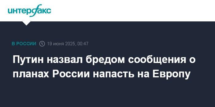Москва. 19 июня. INTERFAX.RU - Президент РФ Владимир Путин назвал ложью и бредом сообщения, в которых утверждается, что Россия планирует напасть на страны Европы и НАТО.