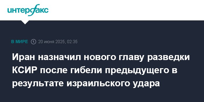Иран назначил нового главу разведки КСИР после гибели предыдущего в результате израильского удара