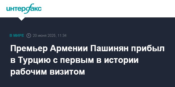 Москва. 20 июня. INTERFAX.RU - Премьер-министр Армении Никол Пашинян в пятницу прибыл в Турцию, это первый рабочий визит главы республики в эту страну.