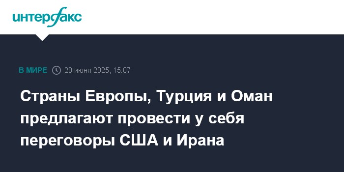 Москва. 20 июня. INTERFAX.RU - Ряд стран Европы, Турция и Оман предлагали принять у себя переговоры США и Ирана в случае их возобновления, передает CBS News со ссылкой на источники.