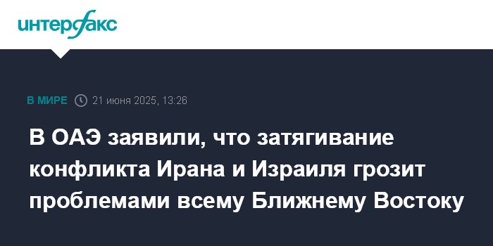 В ОАЭ заявили, что затягивание конфликта Ирана и Израиля грозит проблемами всему Ближнему Востоку