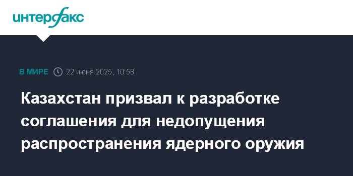 Москва. 22 июня. INTERFAX.RU - В Казахстане считают, что все разногласия, включая ядерную проблематику, должны решаться путем переговоров на основе устава ООН и призывают к скорейшей разработке соглашения с целью недопущения распространения ядерного оружия, заявили в МИД республики.