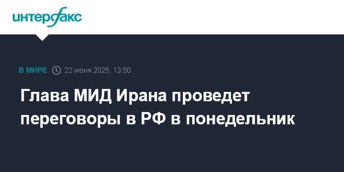 Москва. 22 июня. INTERFAX.RU - Глава МИД Ирана Аббас Аракчи сообщил, что позже в воскресенье направится в РФ, а в понедельник рассчитывает на переговоры с российским руководством.