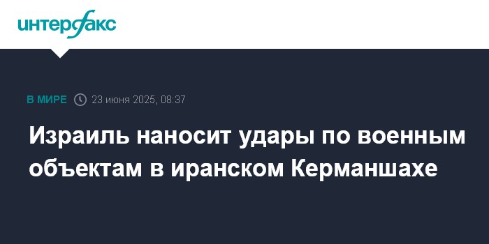 Москва. 23 июня. INTERFAX.RU - Армия обороны Израиля (ЦАХАЛ) сообщила, что наносит удары по военным объектам в городе Керманшах на западе Ирана.