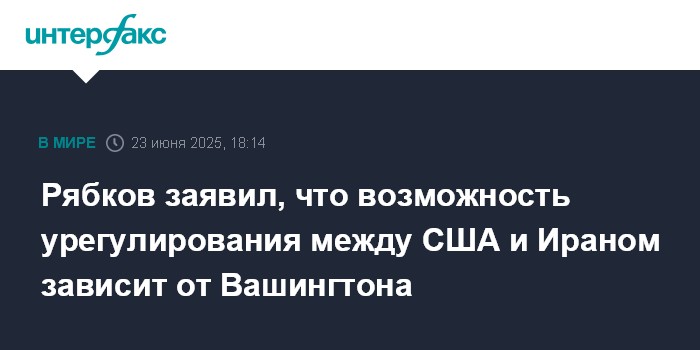 Москва. 23 июня. INTERFAX.RU - Замглавы МИД РФ Сергей Рябков заявил, что возможность возвращения к урегулированию ирано-американских отношений зависит от Вашингтона, всегда нужно давать шанс дипломатии.