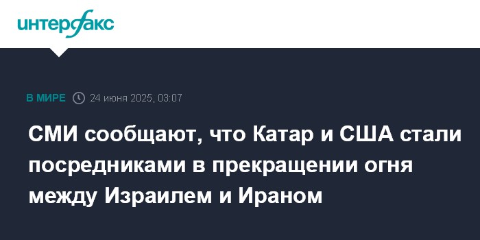 СМИ сообщают, что Катар и США стали посредниками в прекращении огня между Израилем и Ираном