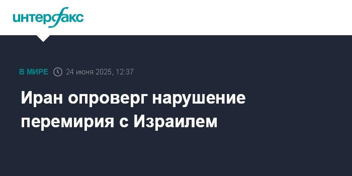 Москва. 24 июня. INTERFAX.RU - Власти Ирана называют неправдой заявления израильской стороны о том, что после вступления в силу перемирия они запустили ракеты по израильской территории, сообщают во вторник иранские СМИ.
