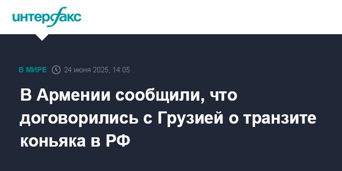 Москва. 24 июня. INTERFAX.RU - Министр экономики Армении Геворг Папоян и вице-премьер, министр экономики Грузии Леван Давиташвили договорились о механизме транзита армянского коньяка через территорию Грузии в Россию, заявил Папоян после переговоров в Тбилиси.