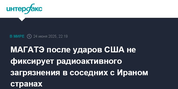 Москва. 24 июня. INTERFAX.RU - МАГАТЭ не выявило радиоактивного загрязнения в граничащих с Ираном странах после ударов США по иранским ядерным объектам 22 июня, заявил гендиректор МАГАТЭ Рафаэль Гросси.