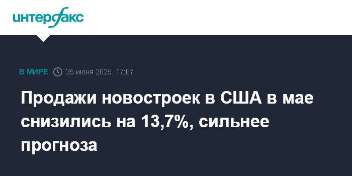 Продажи новостроек в США в мае снизились на 13,7%, сильнее прогноза