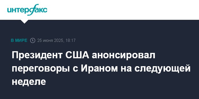 Москва. 25 июня. INTERFAX.RU - Президент США Дональд Трамп анонсировал на следующей неделе переговоры с Ираном и отметил, что заключение соглашения по атому не является единственным желаемым итогом встречи.
