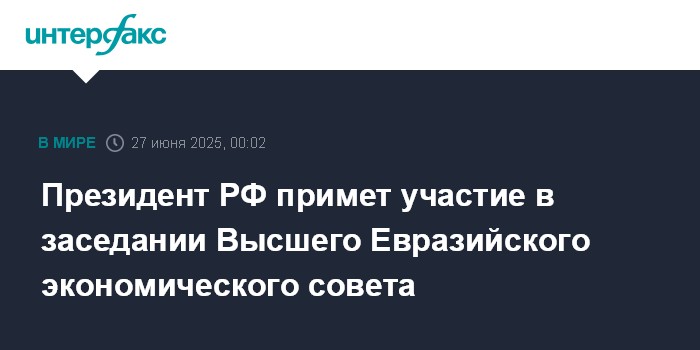Президент РФ примет участие в заседании Высшего Евразийского экономического совета