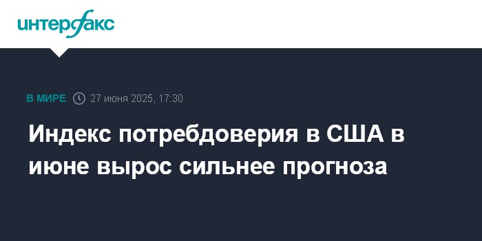 Индекс потребдоверия в США в июне вырос сильнее прогноза