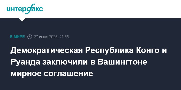 Москва. 27 июня. INTERFAX.RU - Демократическая Республика Конго (ДРК) и Руанда при посредничестве США подписали в пятницу в Вашингтоне соглашение об окончании боевых действий на востоке ДРК.