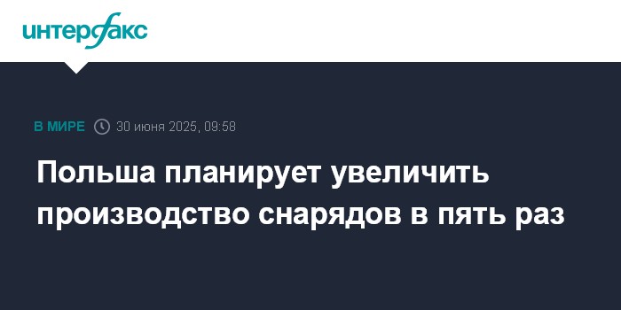 Москва. 30 июня. INTERFAX.RU - Польский государственный оборонный концерн PGZ собирается пятикратно нарастить производство артиллерийских снарядов - до 150 - 180 тысяч единиц в год, заявил Financial Times министр государственных активов Якуб Яворовский.