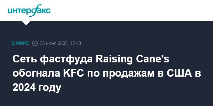 Сеть фастфуда Raising Cane's обогнала KFC по продажам в США в 2024 году