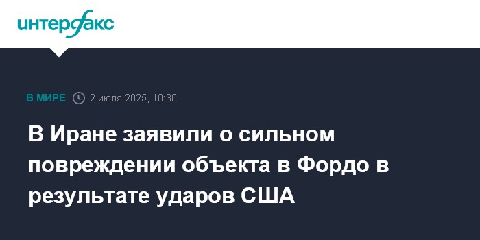 В Иране заявили о сильном повреждении объекта в Фордо в результате ударов США