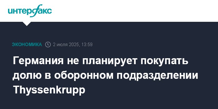 Германия не планирует покупать долю в оборонном подразделении Thyssenkrupp