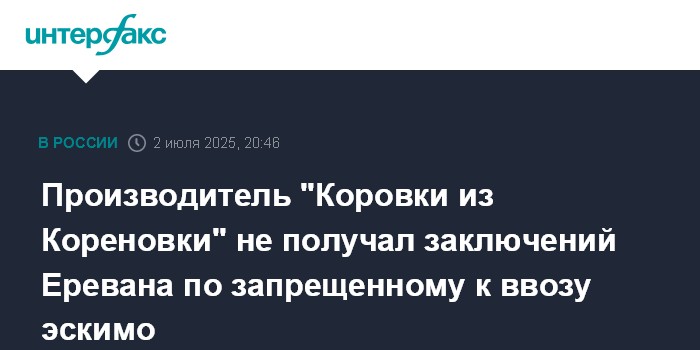 Производитель "Коровки из Кореновки" не получал заключений Еревана по запрещенному к ввозу эскимо