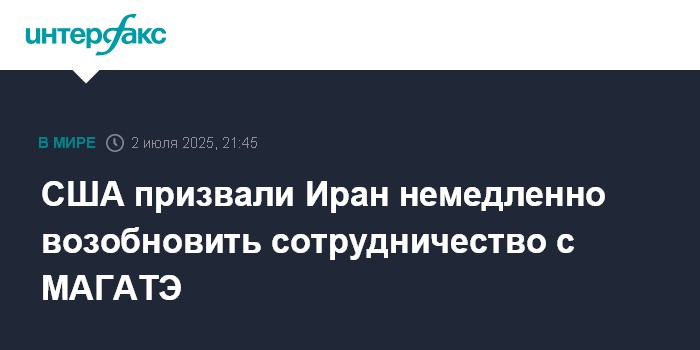 США призвали Иран немедленно возобновить сотрудничество с МАГАТЭ