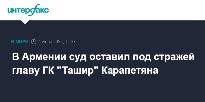 В Армении суд оставил под стражей главу ГК "Ташир" Карапетяна
