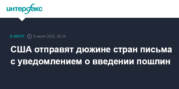 США отправят дюжине стран письма с уведомлением о введении пошлин