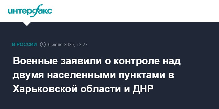 Москва. 6 июля. INTERFAX.RU - Российская армия взяла под контроль населенные пункты Соболевка в Харьковской области и Поддубное в Донецкой Народной Республике, сообщило Минобороны РФ в воскресенье.