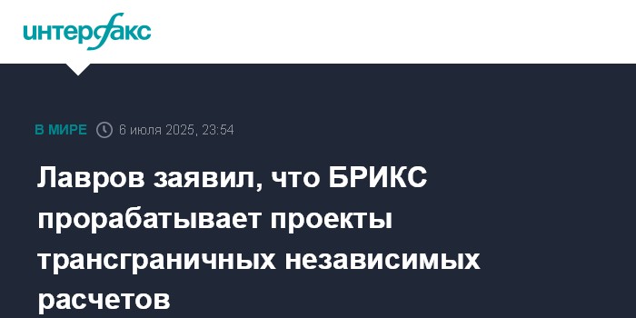 Лавров заявил, что БРИКС прорабатывает проекты трансграничных независимых расчетов