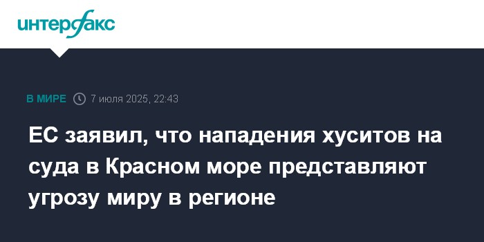 "Это первое подобное нападение на коммерческое судно в 2025 году, серьезная эскалация, которая ставит под угрозу безопасность на море на жизненно важном водном пути для региона и мира", - сказано в заявлении представителя ЕВС.